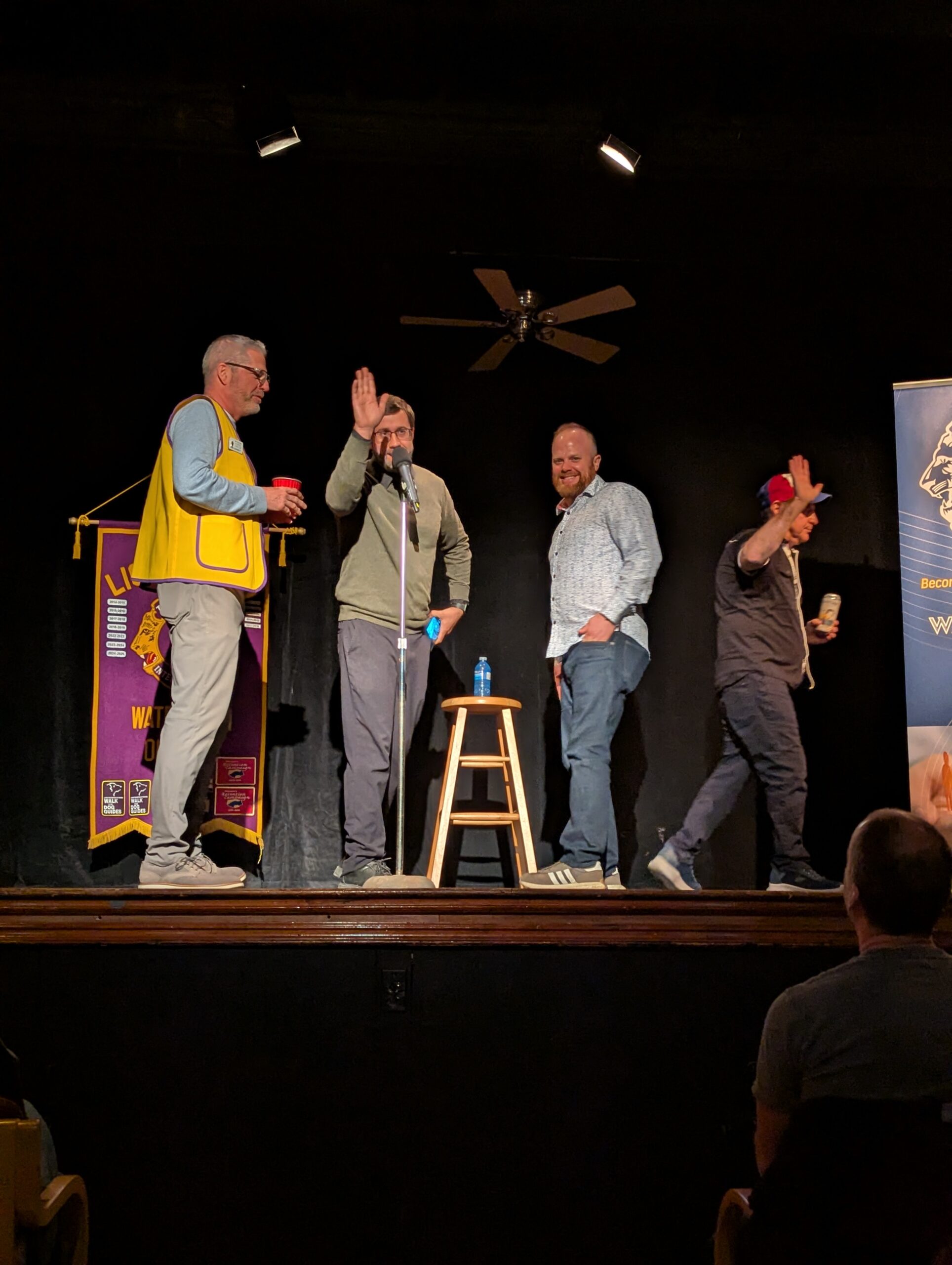 Our Waterdown Lions members Lion Cat, Lion Rick, Lion John and Lion Denice, with 375 pairs of glasses destined for donation to Medical Ministry International in Hamilton. This is a service we provide started by and continued in memory of former member Bill Taylor.